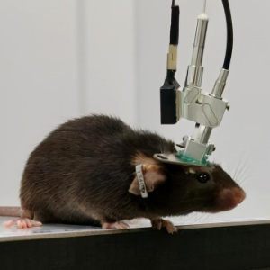8月20日,佩戴多色微型化双光子显微镜的小鼠在实验中。新华社发