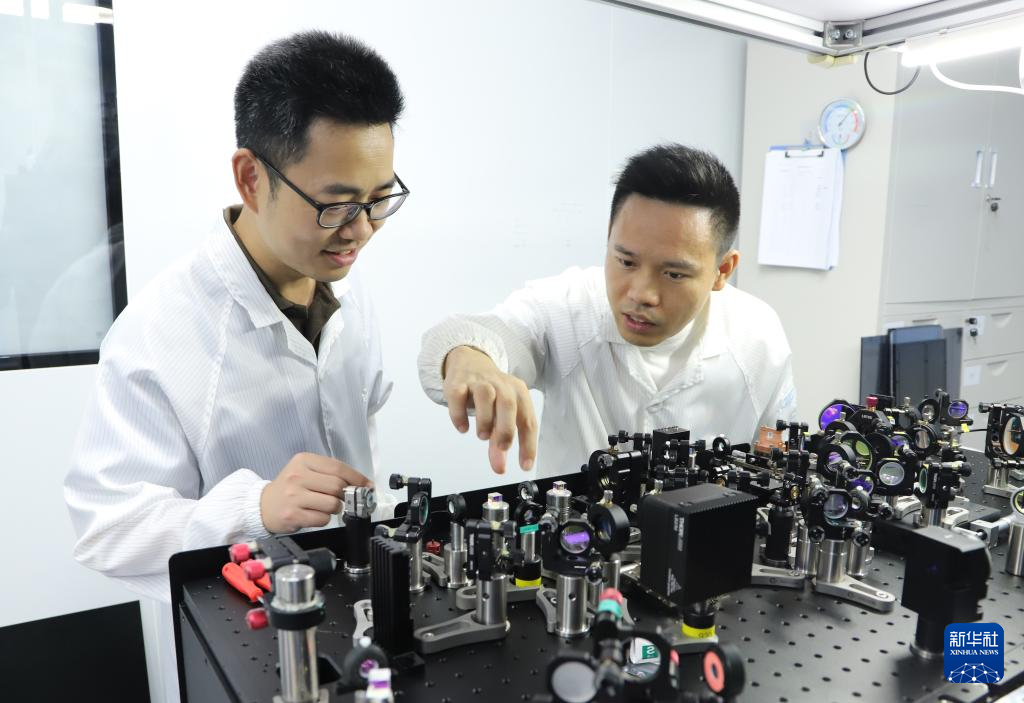 8月21日,研究人员在实验室进行显微镜光路调试实验。新华社发