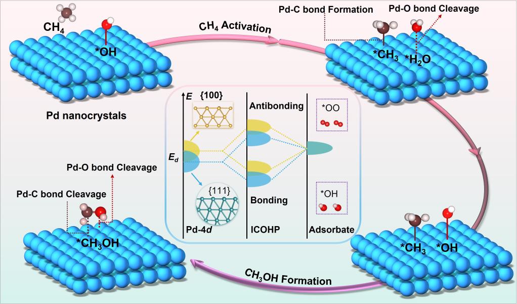 该团队设计出一种纳米级的钯催化剂,可精准识别并激活甲烷分子。更关键的是,它对目标产物甲醇具有一种“快速释放”的特性:一旦宝贵的甲醇分子生成,催化界面会立即将其“弹出”,避免在反应环境中停留过久而被过度氧化。