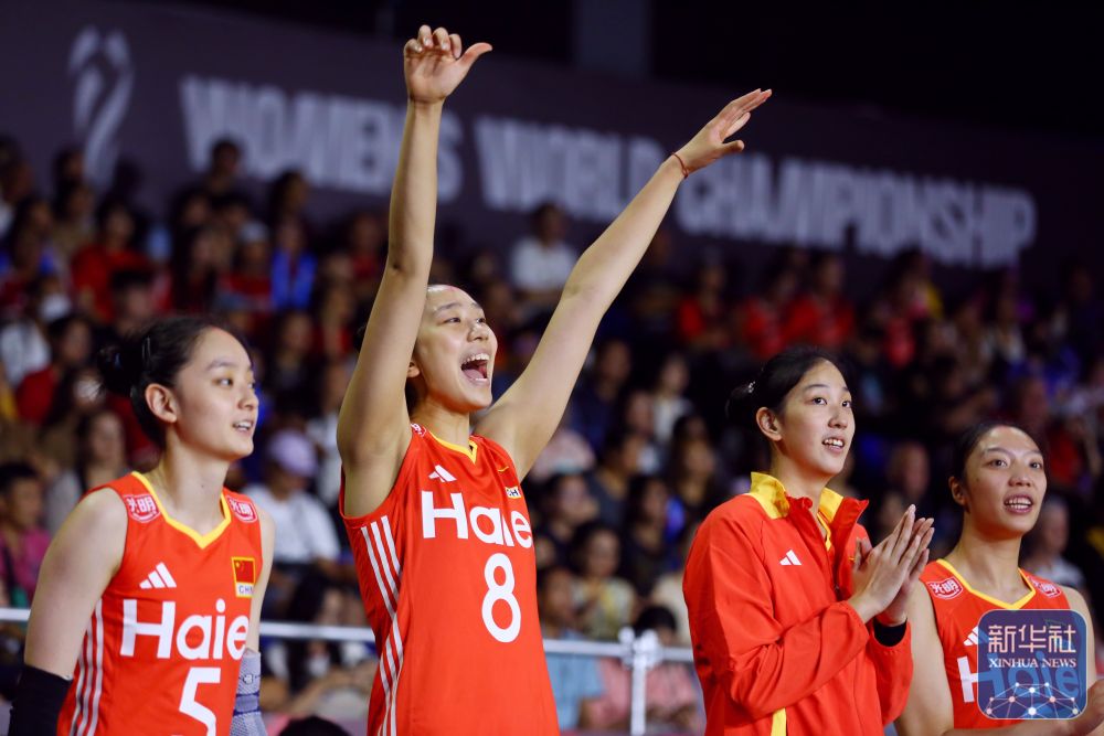 ↑8月23日,中国队球员在比赛中庆祝得分。新华社记者 孙玮彤 摄