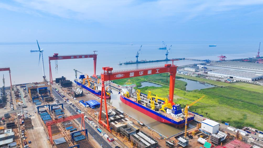 “通浚”轮和“浚广”轮两船26日均已下水。(中交天航局供图)