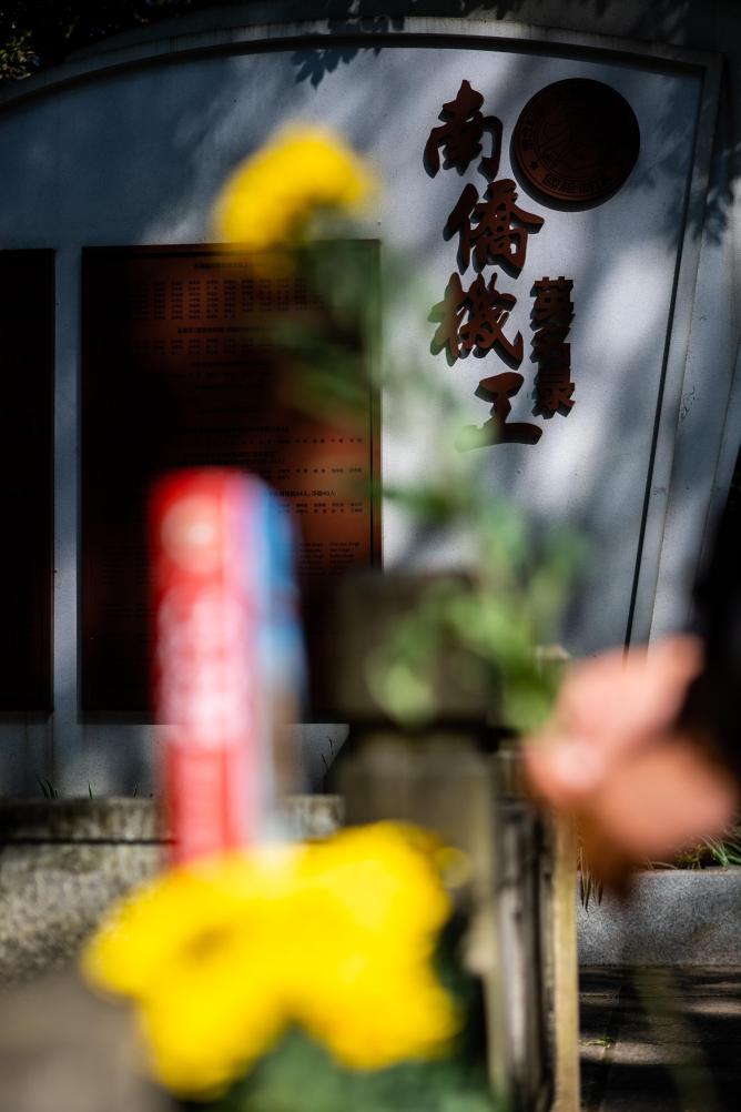 2022年11月2日,民众在昆明西山的南洋华侨机工抗日纪念碑前献花。 新华社记者 江文耀 摄