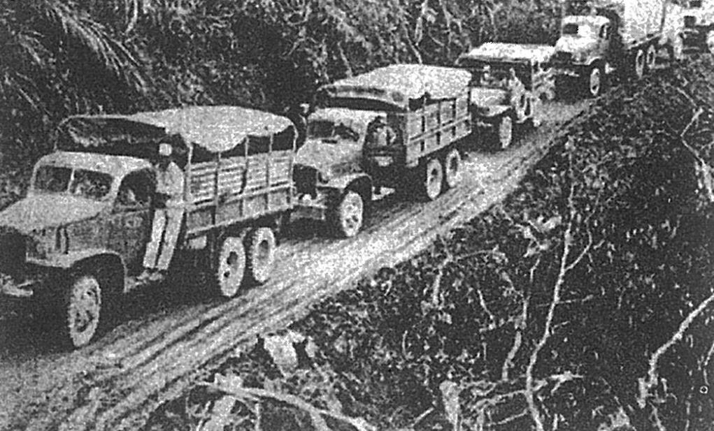 南侨机工驾车行驶在滇缅公路上(资料照片)。 新华社发
