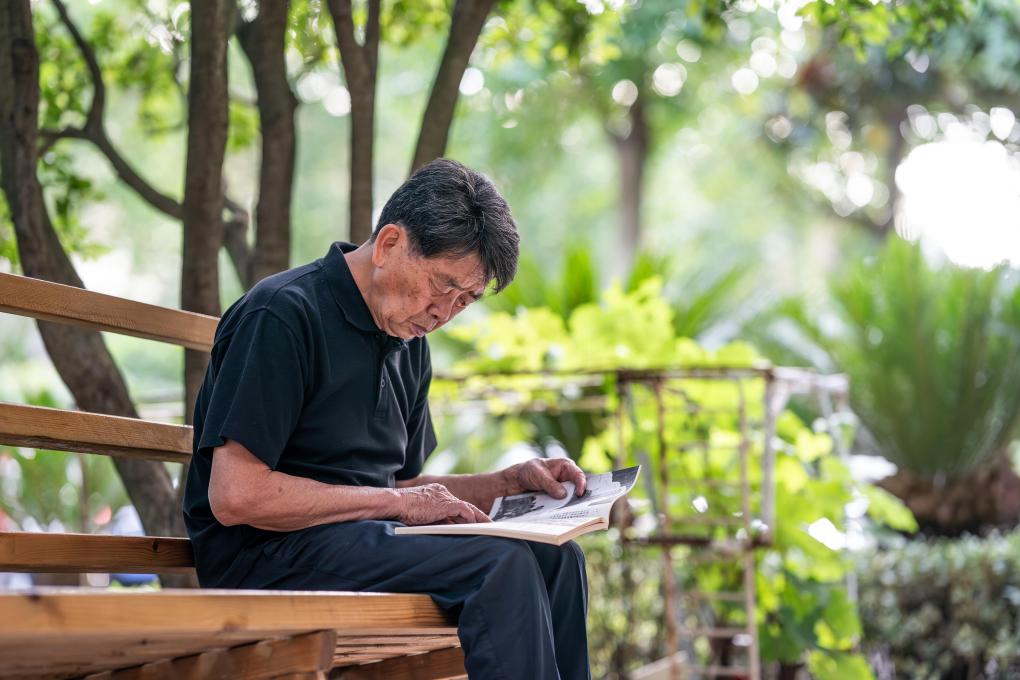 2025年7月17日,张云鹏在院子里翻阅南侨机工相关书籍。
