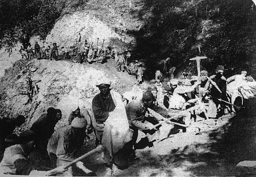 1938年,民众在建设滇缅公路(资料照片)。 新华社发