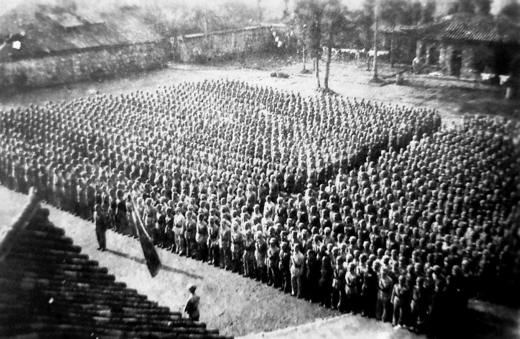 1939年,南侨机工在昆明潘家湾训练所接受军事训练(资料照片)。 新华社发