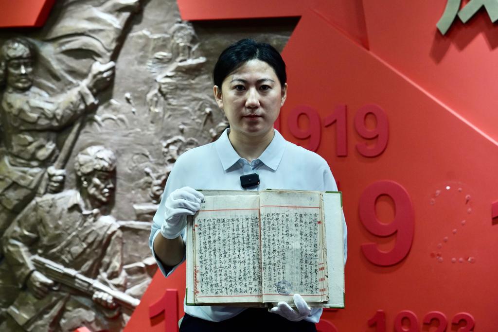 黑龙江省档案馆工作人员赵倩展示这份档案。新华社记者 何山 摄