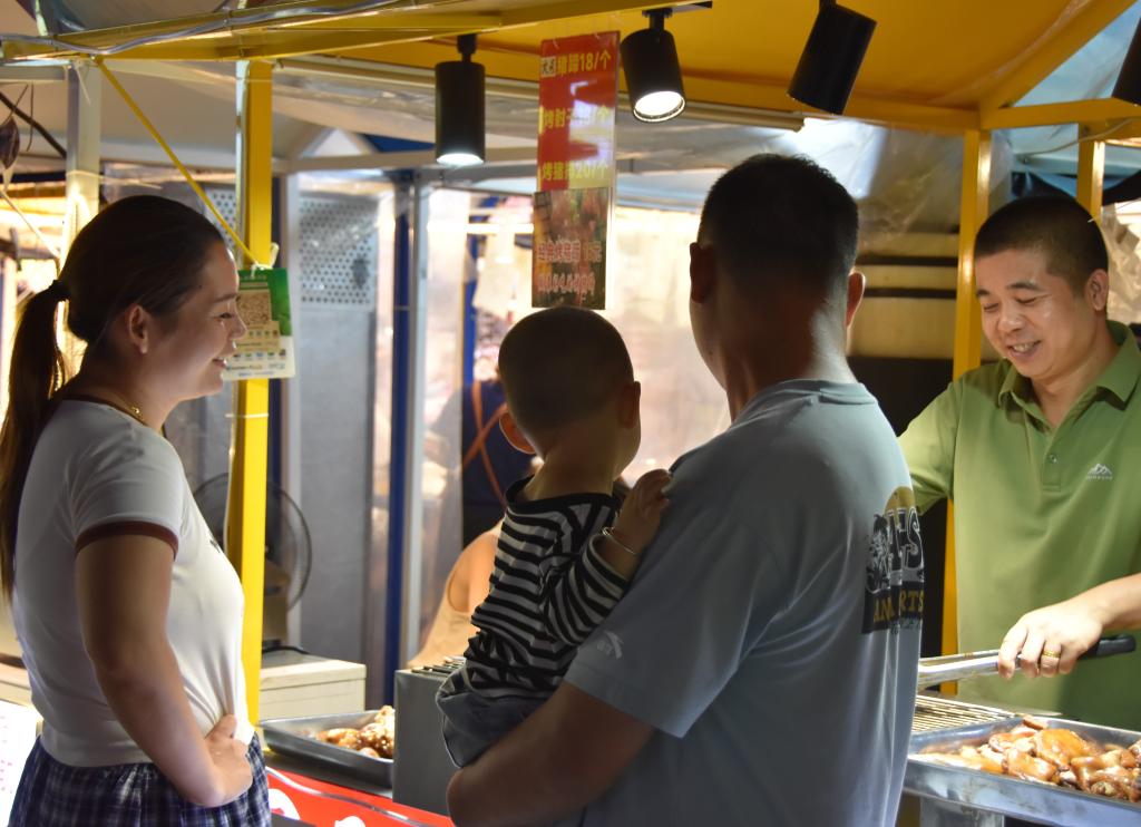 近年来,九州夜市经历了一场规范化、低碳化转变。“为了减少油烟对周边商铺的影响、防治空气污染,我们区分了轻餐区和重餐区,还在重餐区摊位安装了油烟净化器。”安吉县昌硕社区居委会委员曹译匀表示,规范化运营以来,摊位从2022年的几十个增长至约两百个,周末日均客流量达3万人次。