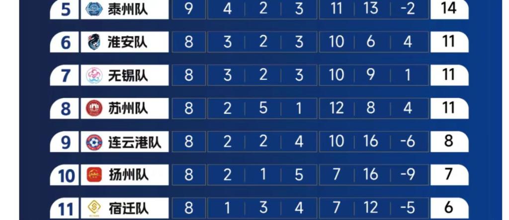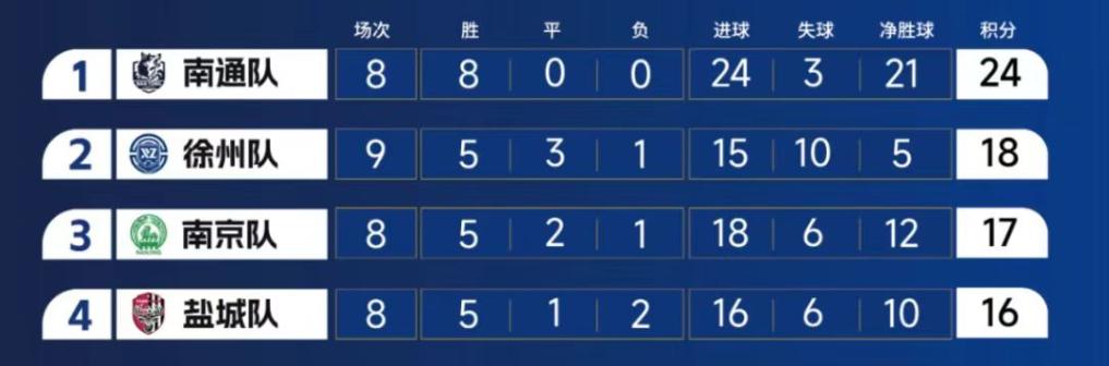 江苏省城市足球联赛目前积分榜前四
