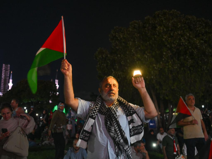 8月9日,土耳其民众在伊斯坦布尔集会声援加沙。新华社记者刘磊摄
