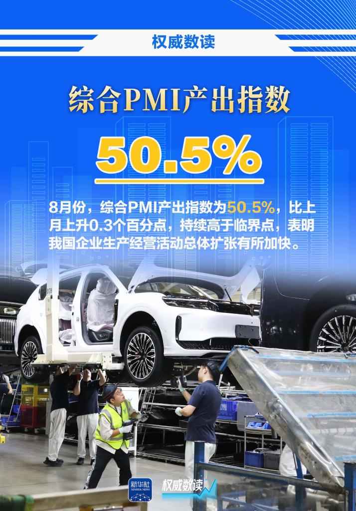 国家统计局服务业调查中心、中国物流与采购联合会8月31日发布的数据显示,8月份,制造业景气水平有所改善;非制造业继续保持扩张;综合PMI产出指数持续高于临界点,表明我国企业生产经营活动总体扩张有所加快。