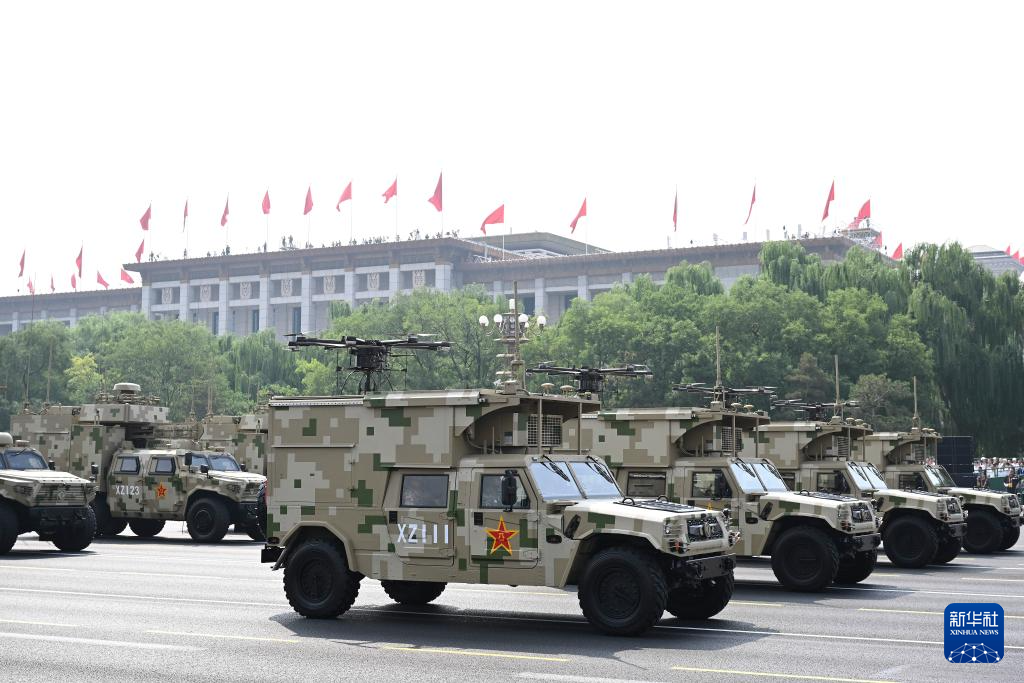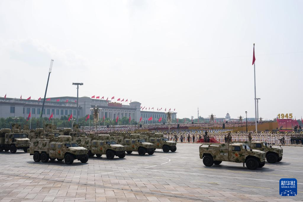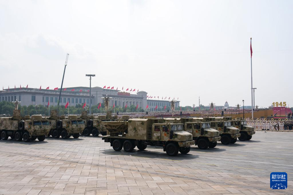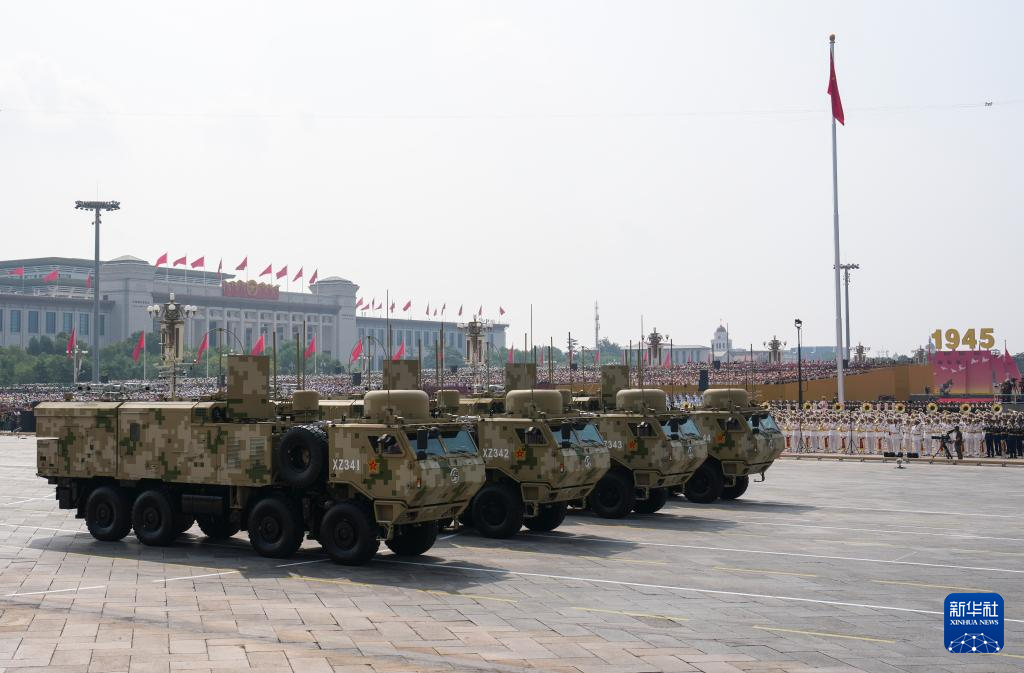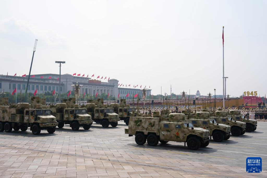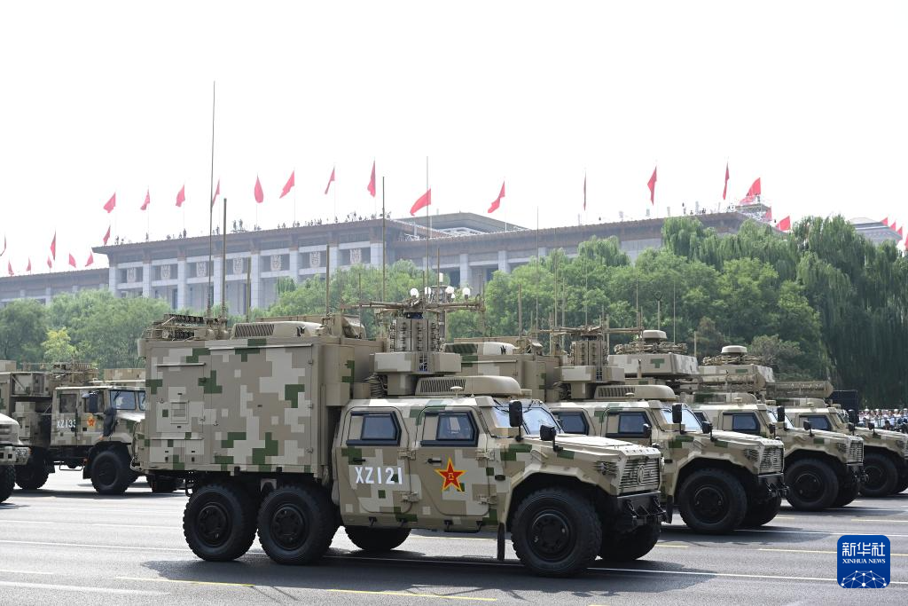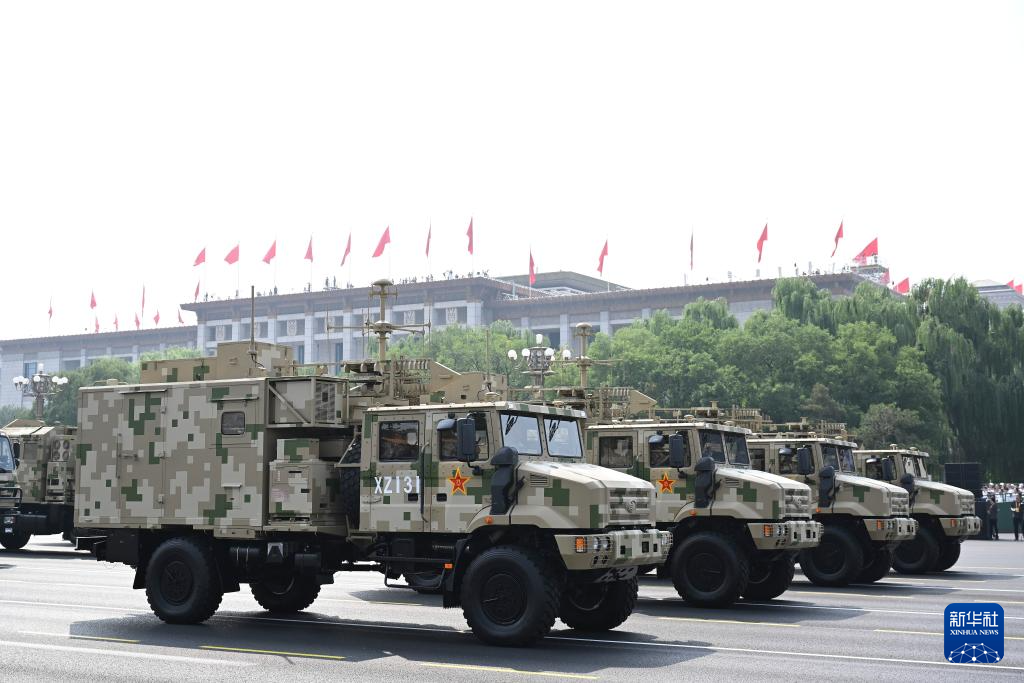 9月3日,纪念中国人民抗日战争暨世界反法西斯战争胜利80周年大会在北京隆重举行。这是信息支援方队接受检阅。