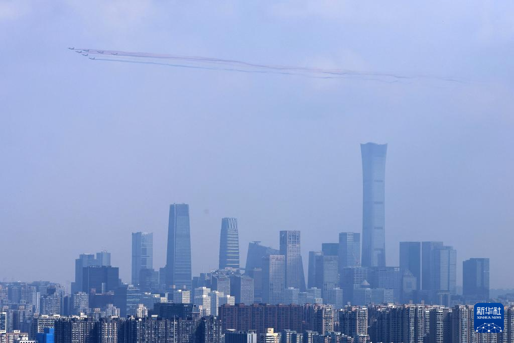 9月3日,纪念中国人民抗日战争暨世界反法西斯战争胜利80周年大会在北京隆重举行。这是教练机梯队接受检阅。