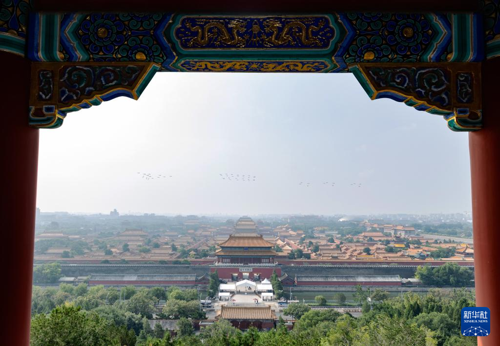 9月3日,纪念中国人民抗日战争暨世界反法西斯战争胜利80周年大会在北京隆重举行。这是空中护旗梯队飞过天安门广场上空。