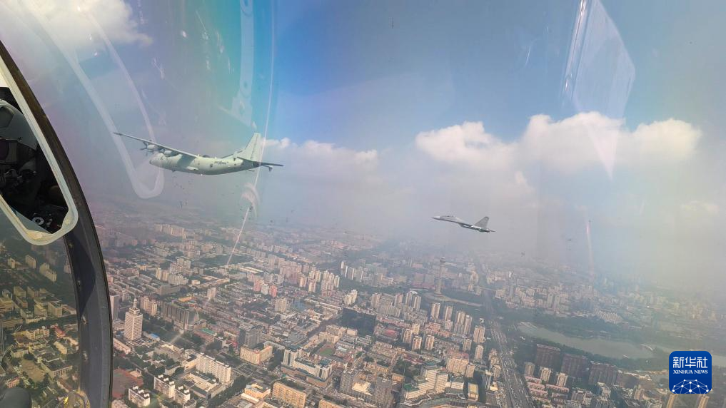9月3日,纪念中国人民抗日战争暨世界反法西斯战争胜利80周年大会在北京隆重举行。这是特种机梯队从北京城区上空飞过。