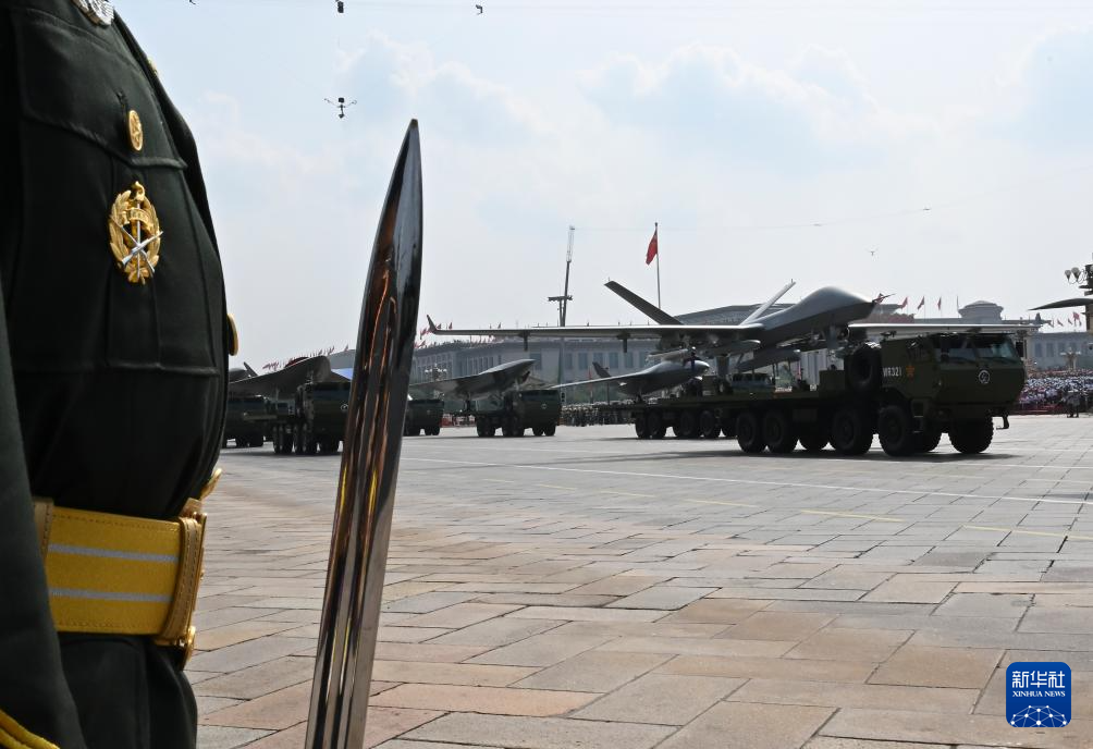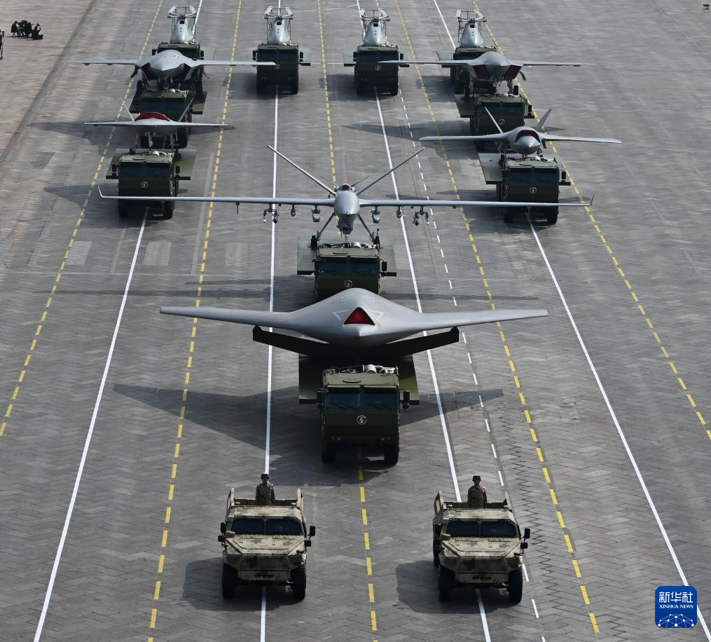 9月3日,纪念中国人民抗日战争暨世界反法西斯战争胜利80周年大会在北京隆重举行。这是空中无人作战方队接受检阅。