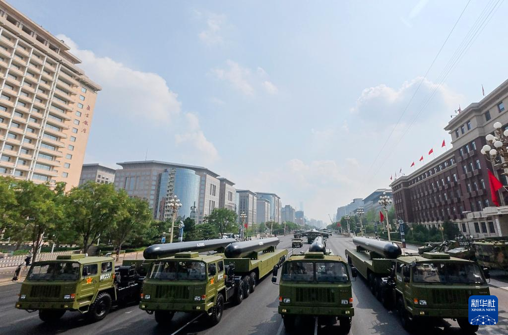 9月3日,纪念中国人民抗日战争暨世界反法西斯战争胜利80周年大会在北京隆重举行。这是高超声速导弹方队接受检阅。