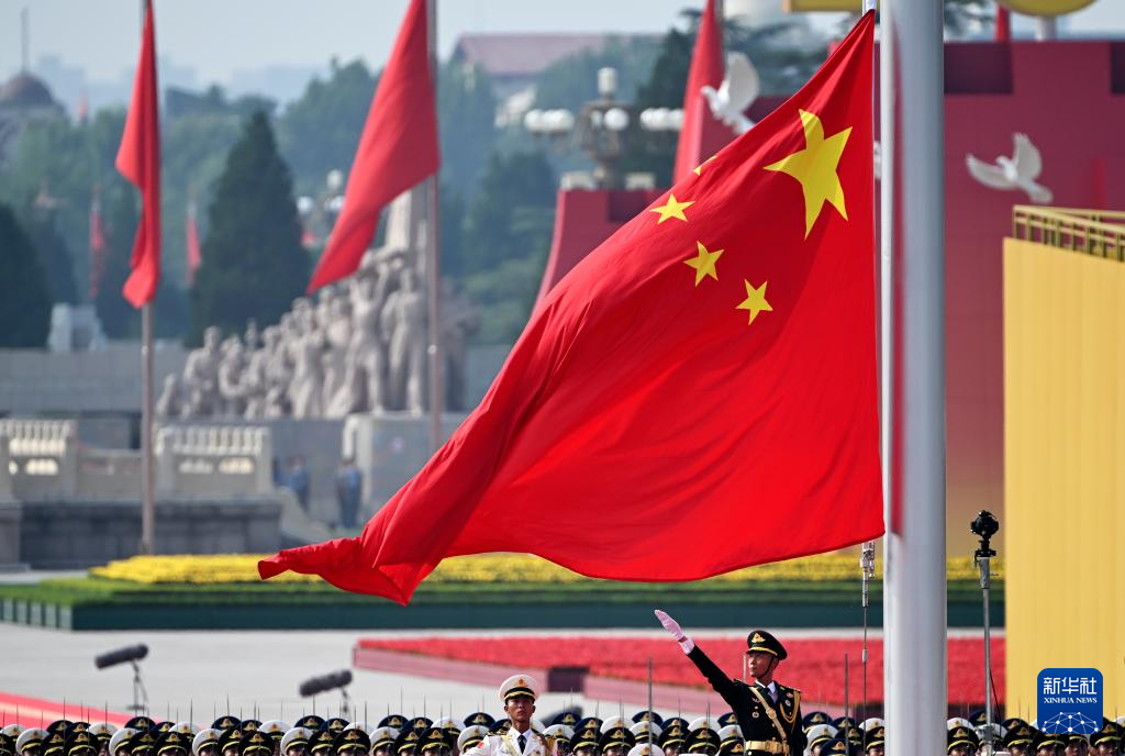 9月3日,纪念中国人民抗日战争暨世界反法西斯战争胜利80周年大会在北京隆重举行。这是天安门广场举行隆重的升国旗仪式。