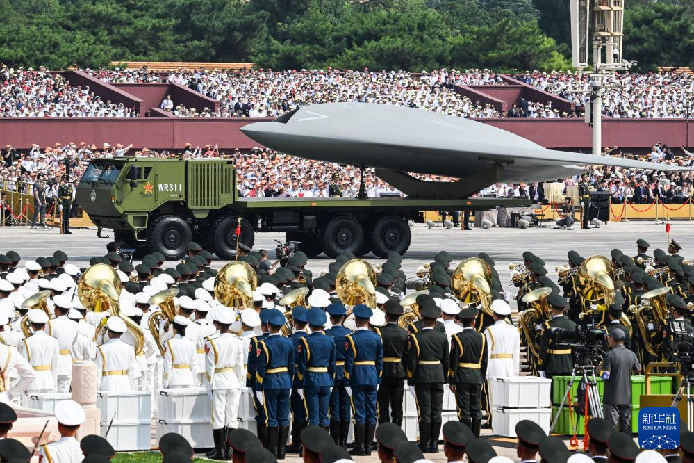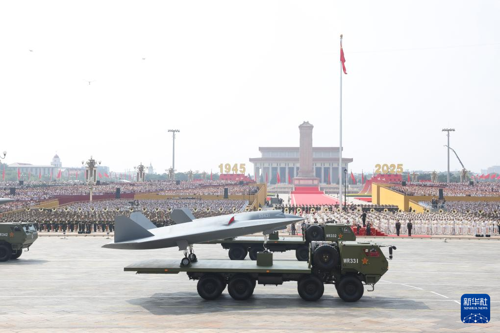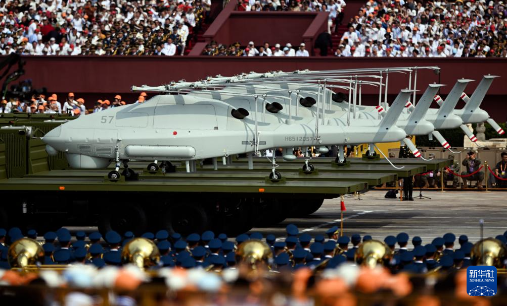9月3日,纪念中国人民抗日战争暨世界反法西斯战争胜利80周年大会在北京隆重举行。这是空中无人作战方队接受检阅。