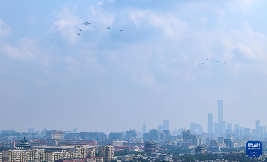 9月3日,纪念中国人民抗日战争暨世界反法西斯战争胜利80周年大会在北京隆重举行。这是加受油机梯队通过天安门广场。