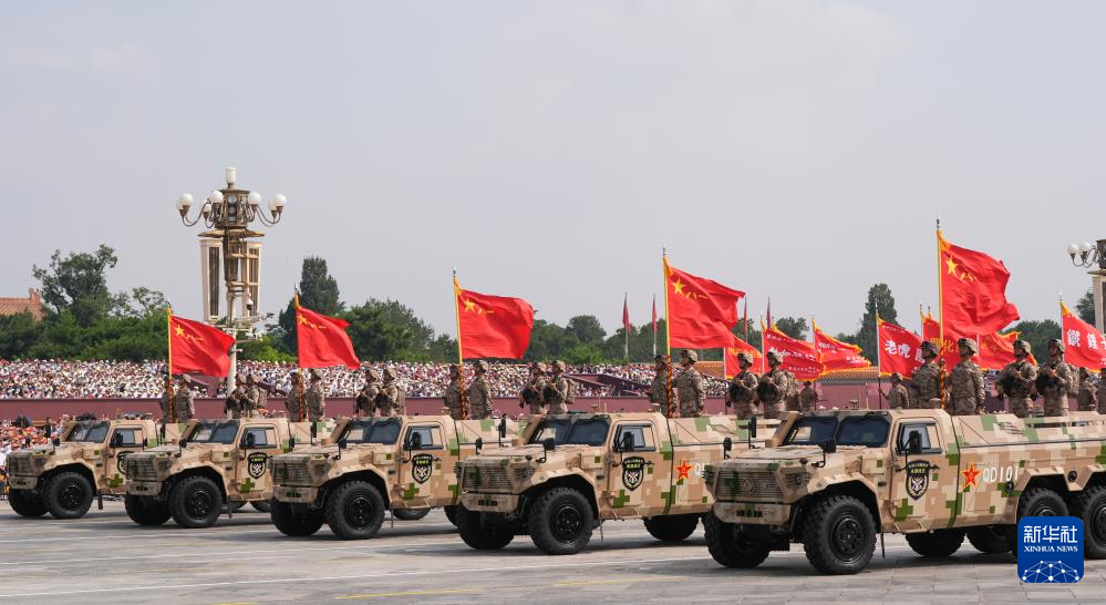9月3日,纪念中国人民抗日战争暨世界反法西斯战争胜利80周年大会在北京隆重举行。这是信息支援部队方队接受检阅。
