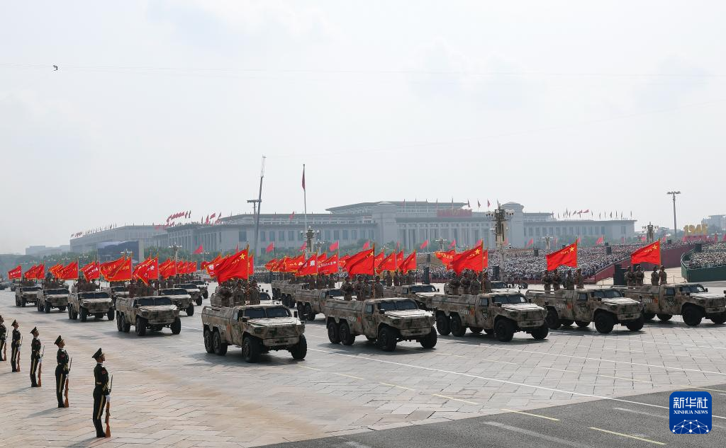 9月3日,纪念中国人民抗日战争暨世界反法西斯战争胜利80周年大会在北京隆重举行。这是战旗方队接受检阅。