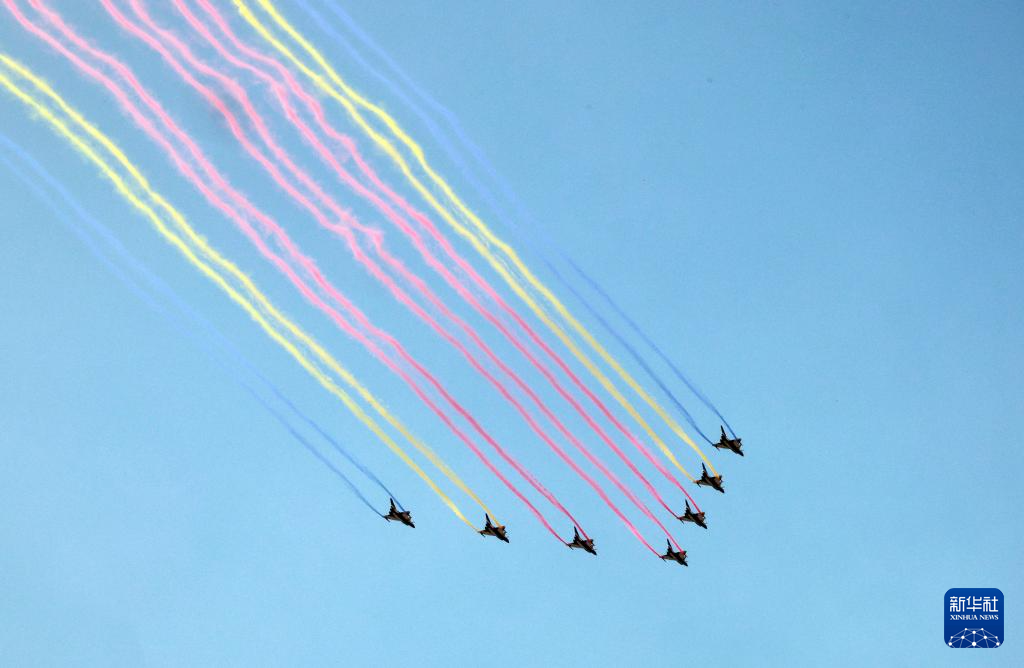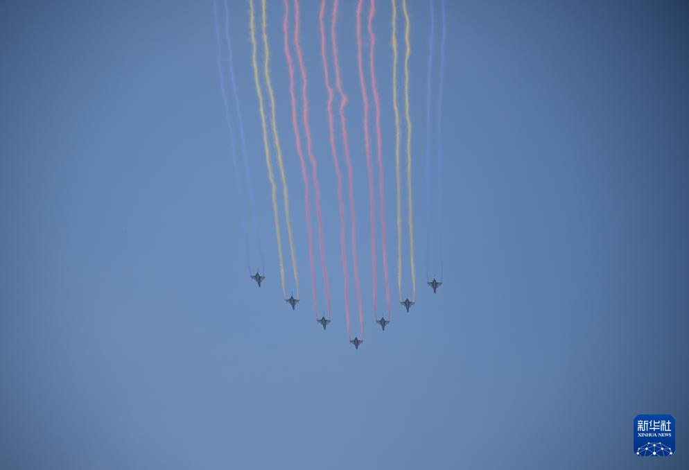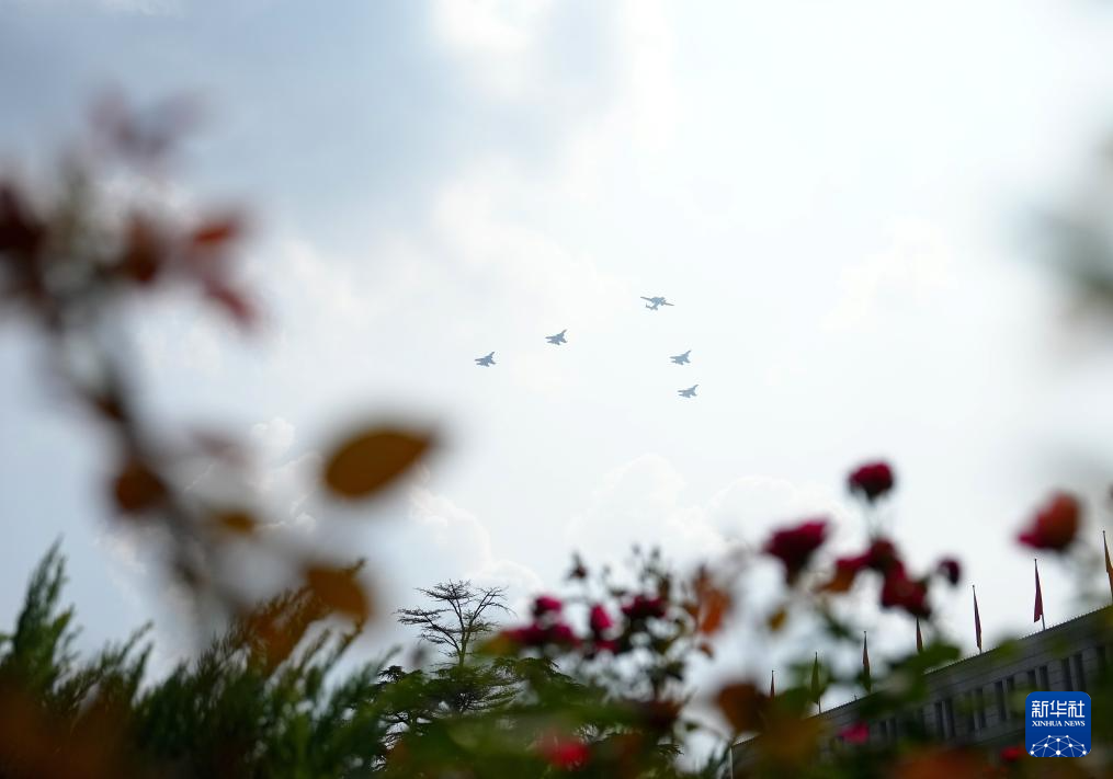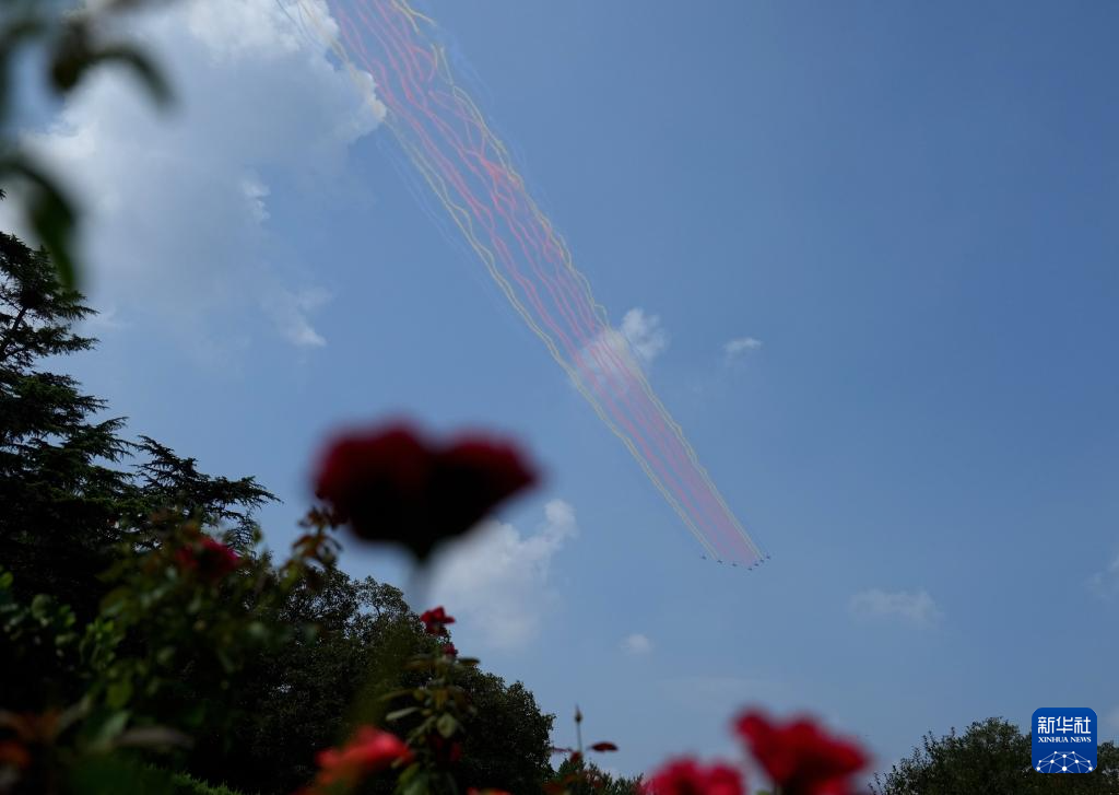 9月3日,纪念中国人民抗日战争暨世界反法西斯战争胜利80周年大会在北京隆重举行。这是在北京天坛公园拍摄的教练机梯队。