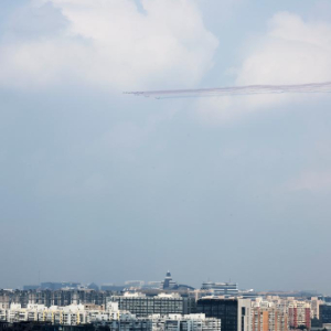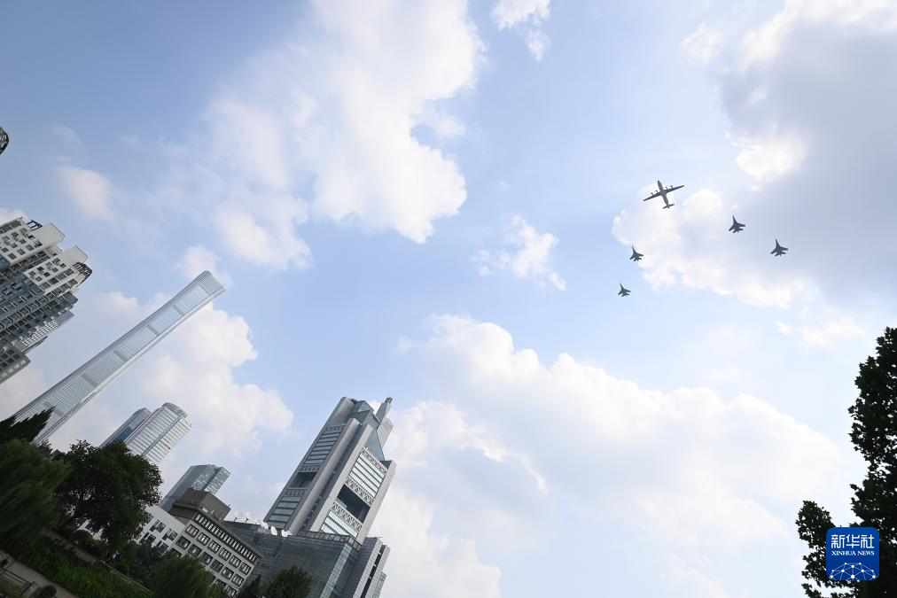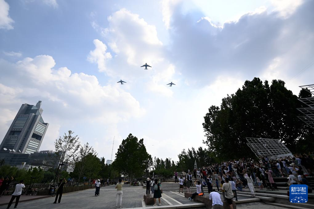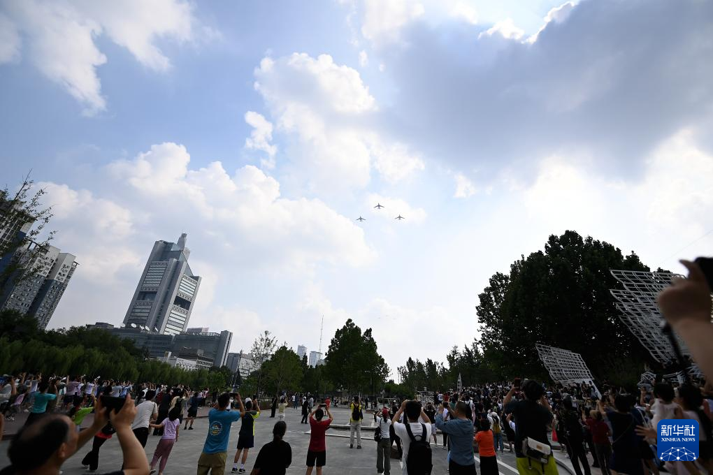 9月3日,纪念中国人民抗日战争暨世界反法西斯战争胜利80周年大会在北京隆重举行。这是市民在观看空中梯队。