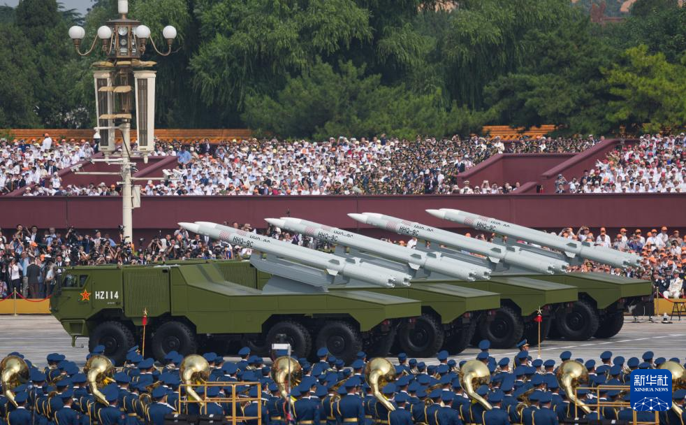 9月3日,纪念中国人民抗日战争暨世界反法西斯战争胜利80周年大会在北京隆重举行。这是反舰导弹方队接受检阅。