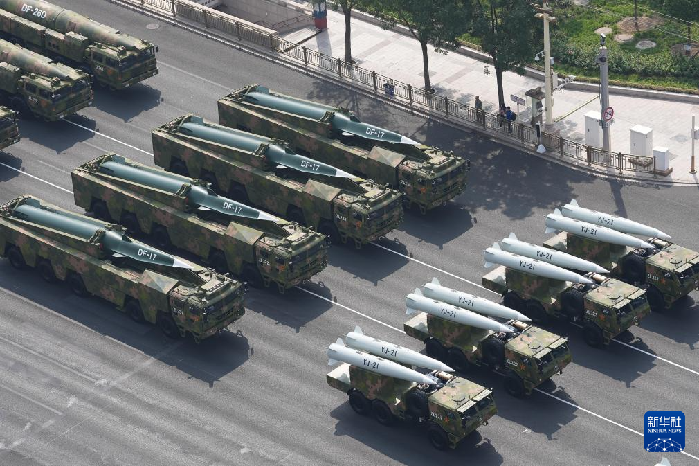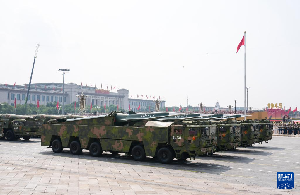 9月3日,纪念中国人民抗日战争暨世界反法西斯战争胜利80周年大会在北京隆重举行。这是高超声速导弹方队接受检阅。