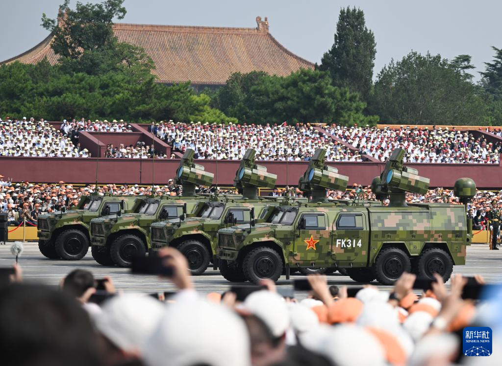 9月3日,纪念中国人民抗日战争暨世界反法西斯战争胜利80周年大会在北京隆重举行。这是舰载防空武器方队通过天安门广场。