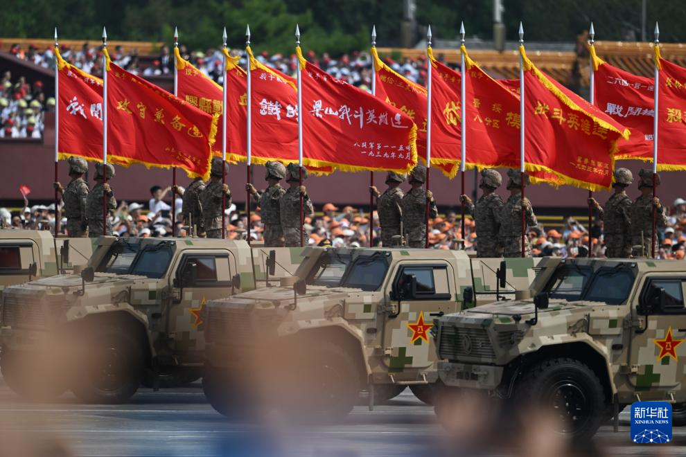 9月3日,纪念中国人民抗日战争暨世界反法西斯战争胜利80周年大会在北京隆重举行。这是战旗方队接受检阅。