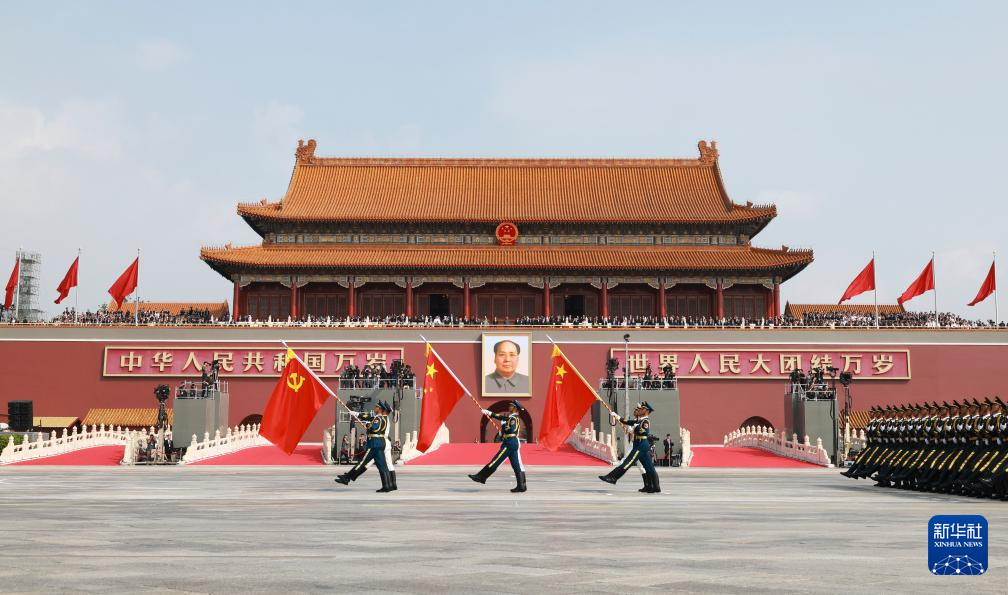 9月3日,纪念中国人民抗日战争暨世界反法西斯战争胜利80周年大会在北京隆重举行。这是战旗方队通过天安门广场。