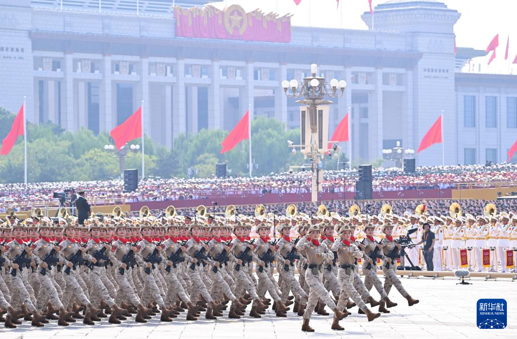 9月3日,纪念中国人民抗日战争暨世界反法西斯战争胜利80周年大会在北京隆重举行。这是仪仗方队接受检阅。