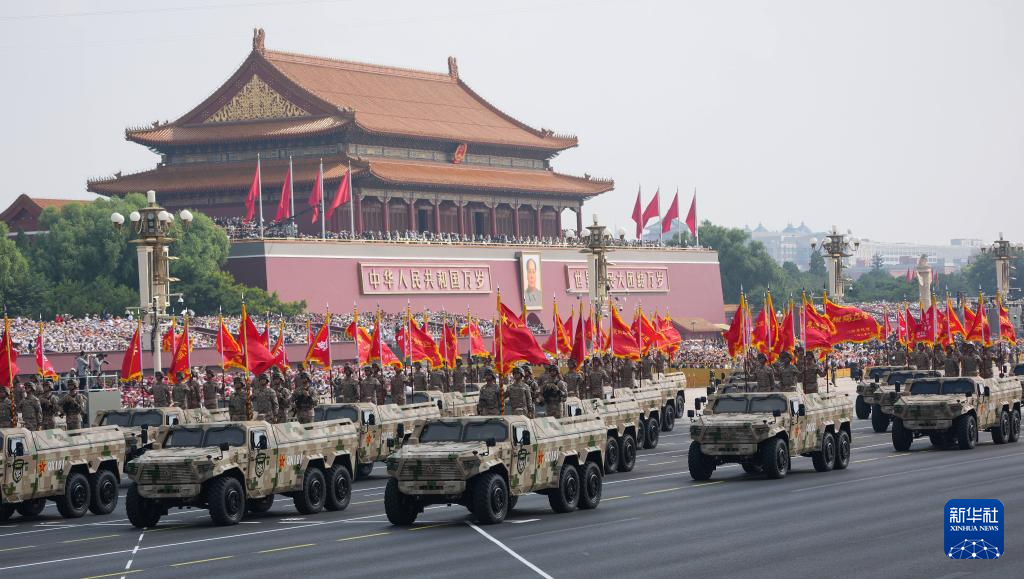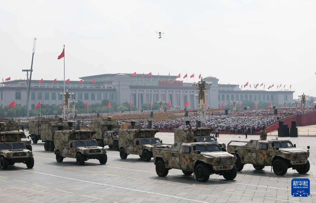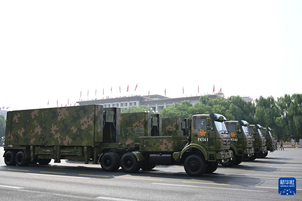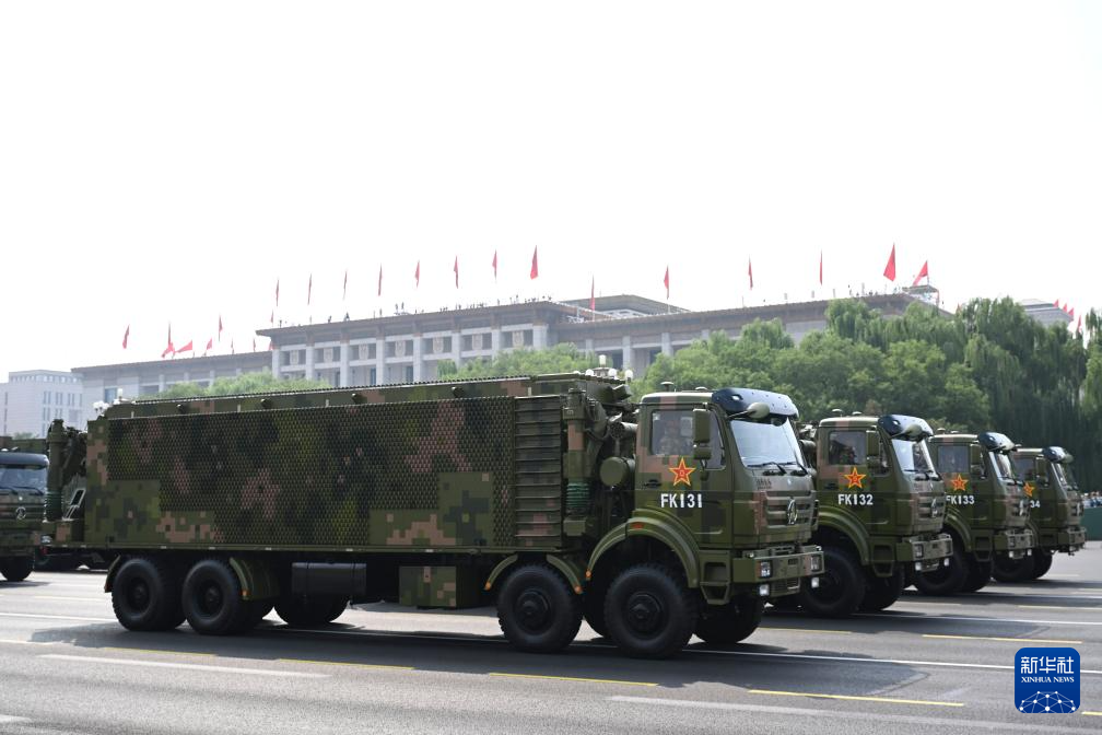 9月3日,纪念中国人民抗日战争暨世界反法西斯战争胜利80周年大会在北京隆重举行。这是信息支援方队通过天安门广场。