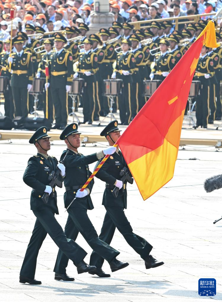 9月3日,纪念中国人民抗日战争暨世界反法西斯战争胜利80周年大会在北京隆重举行。这是国旗护卫队在天安门广场列队。