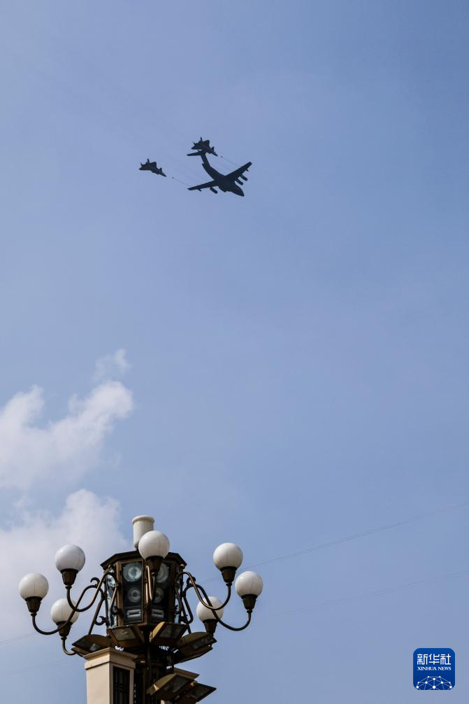9月3日,纪念中国人民抗日战争暨世界反法西斯战争胜利80周年大会在北京隆重举行。这是加受油机梯队接受检阅。