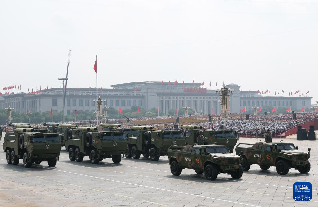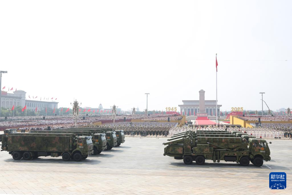 9月3日,纪念中国人民抗日战争暨世界反法西斯战争胜利80周年大会在北京隆重举行。这是远程火炮方队接受检阅。