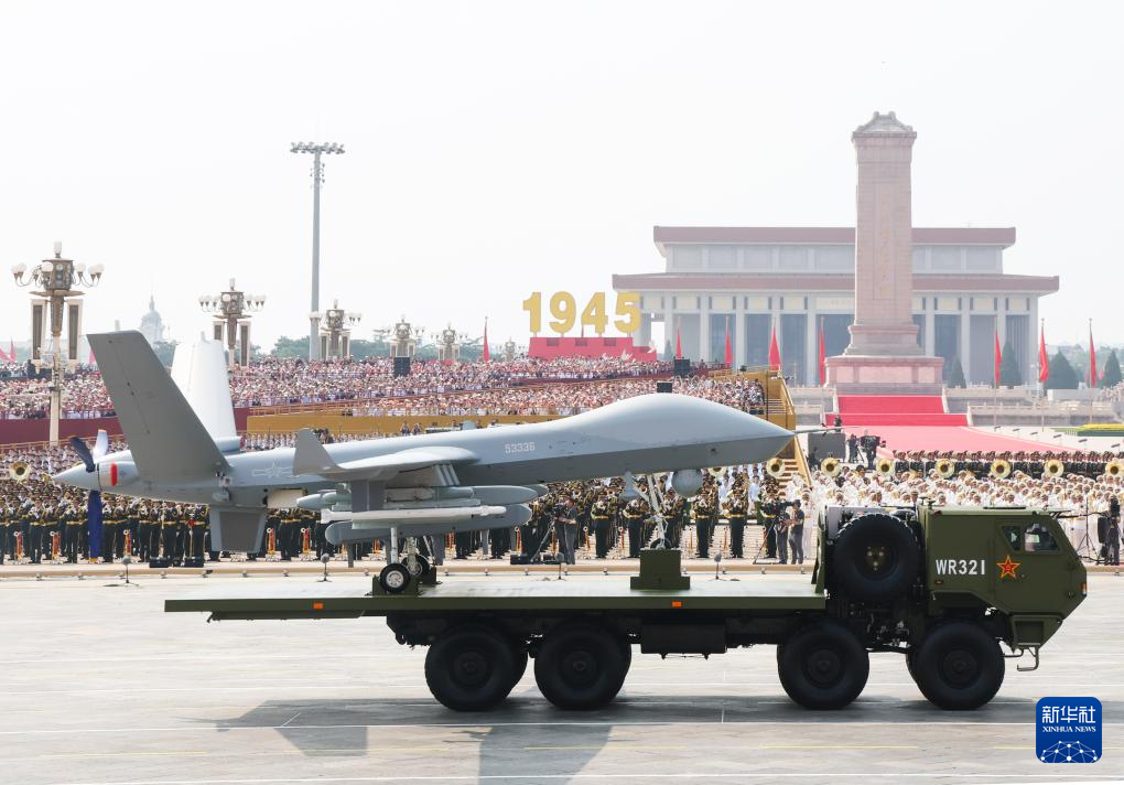 9月3日,纪念中国人民抗日战争暨世界反法西斯战争胜利80周年大会在北京隆重举行。这是空中无人作战方队接受检阅。