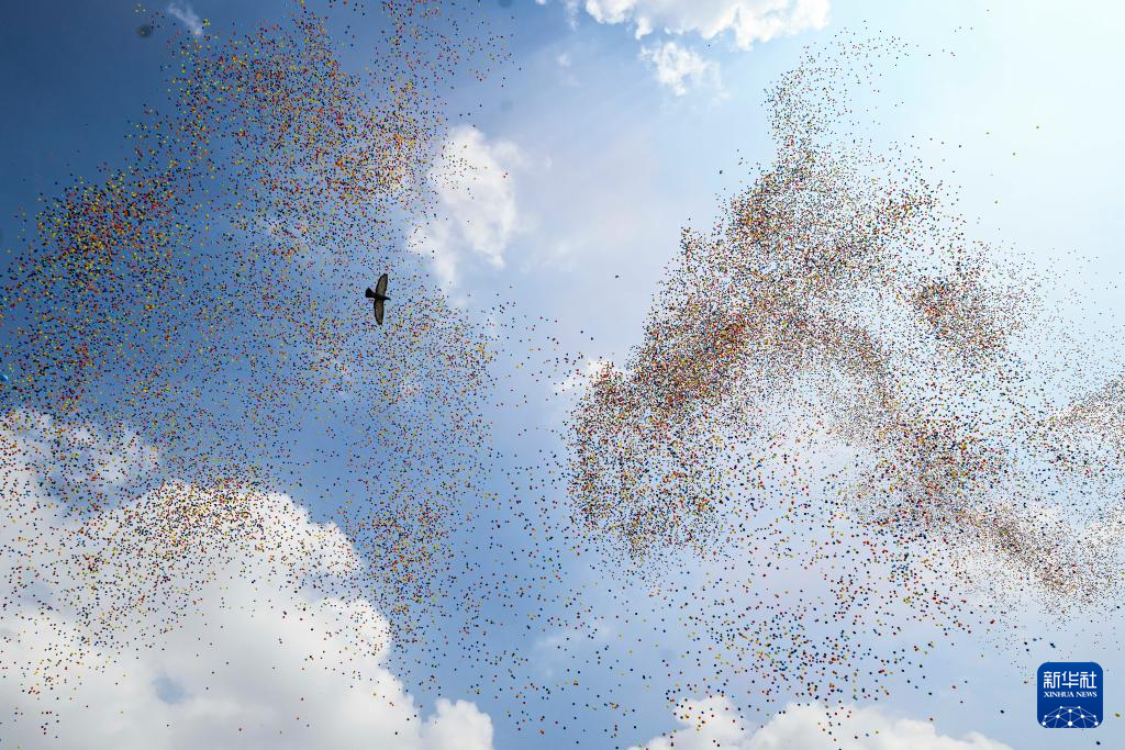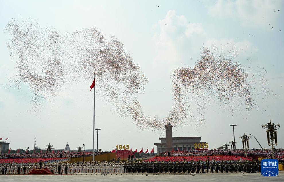 9月3日,纪念中国人民抗日战争暨世界反法西斯战争胜利80周年大会在北京隆重举行。这是纪念大会现场放飞气球。