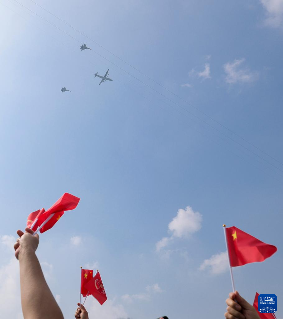 9月3日,纪念中国人民抗日战争暨世界反法西斯战争胜利80周年大会在北京隆重举行。这是空中梯队接受检阅。