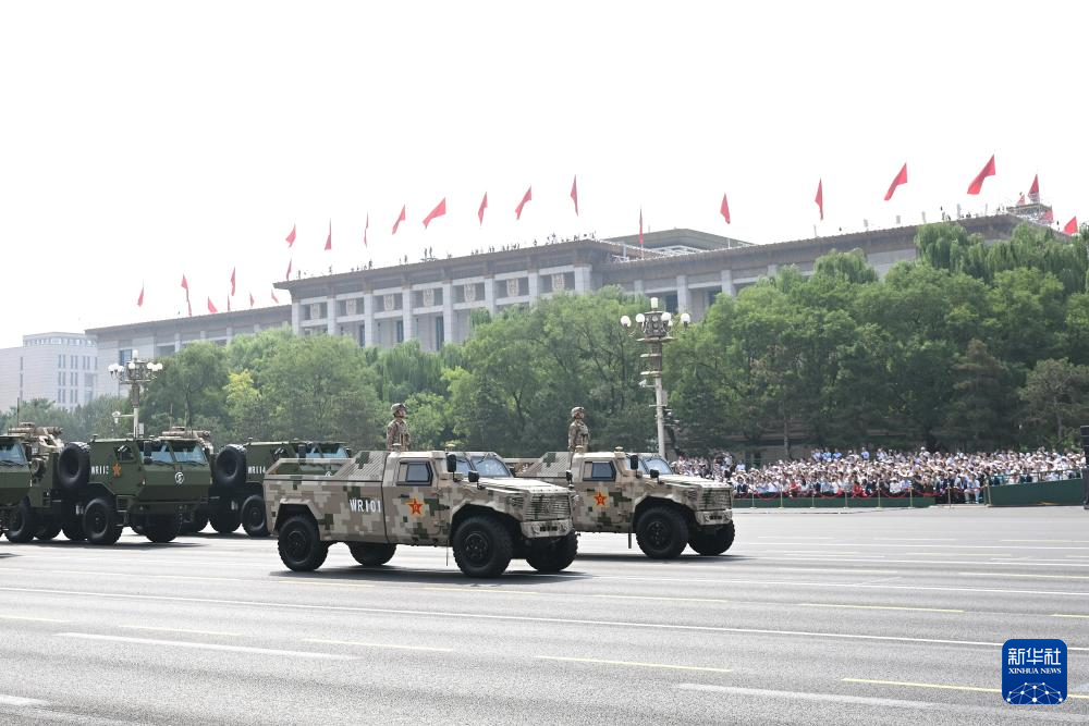 9月3日,纪念中国人民抗日战争暨世界反法西斯战争胜利80周年大会在北京隆重举行。这是陆上无人作战方队接受检阅。