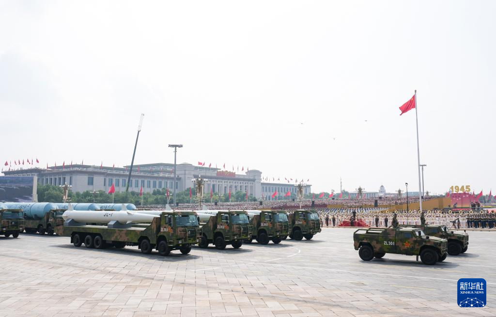 9月3日,纪念中国人民抗日战争暨世界反法西斯战争胜利80周年大会在北京隆重举行。这是核导弹第一方队接受检阅。