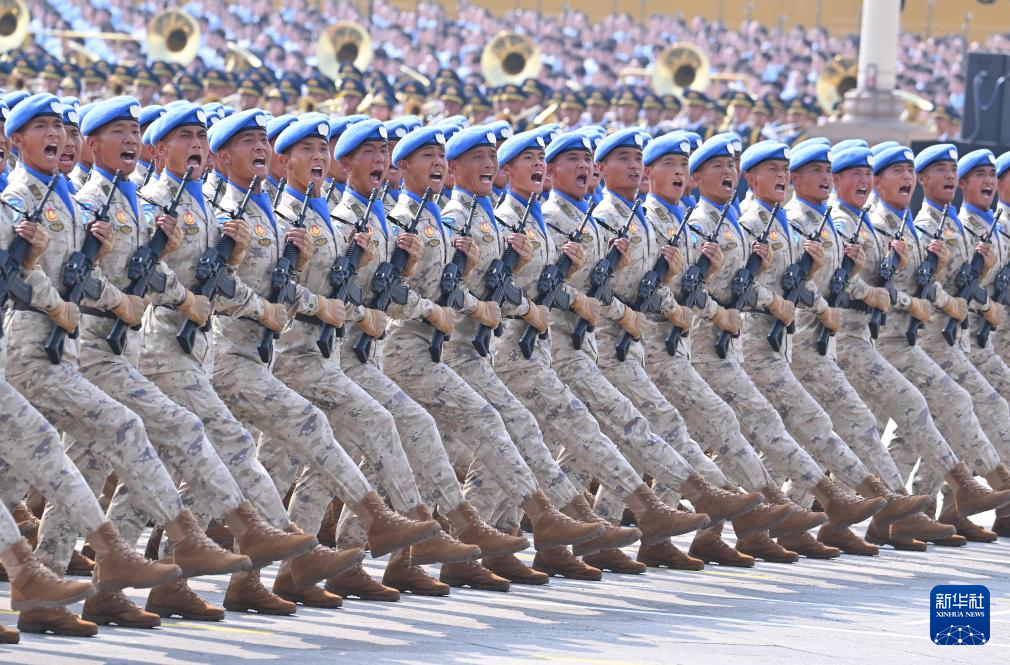 9月3日,纪念中国人民抗日战争暨世界反法西斯战争胜利80周年大会在北京隆重举行。这是维和部队方队接受检阅。