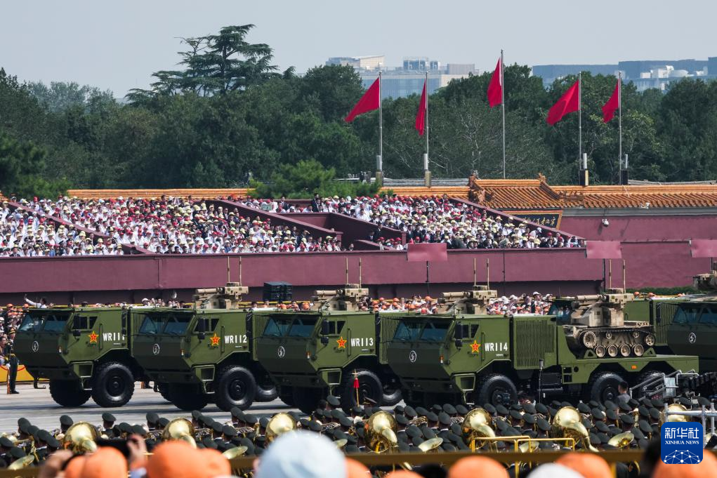9月3日,纪念中国人民抗日战争暨世界反法西斯战争胜利80周年大会在北京隆重举行。这是高超声速导弹方队通过天安门广场。