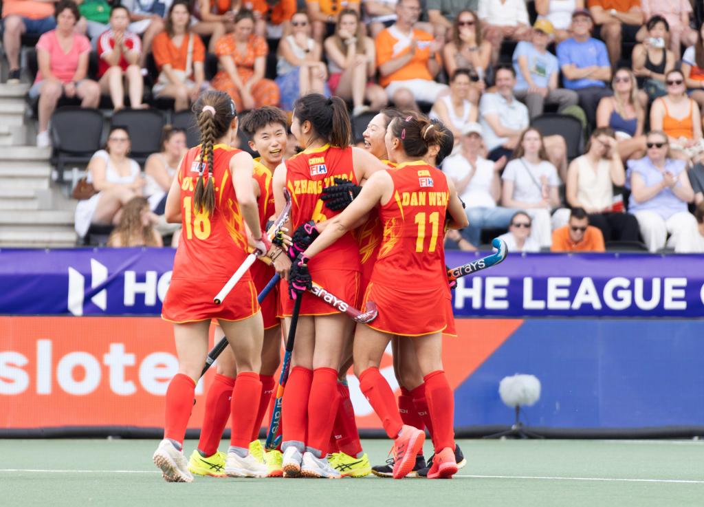 6月14日,中国队球员在2024-2025赛季曲棍球世界超级联赛比赛中。新华社发(西尔维娅·莱德雷尔 摄)