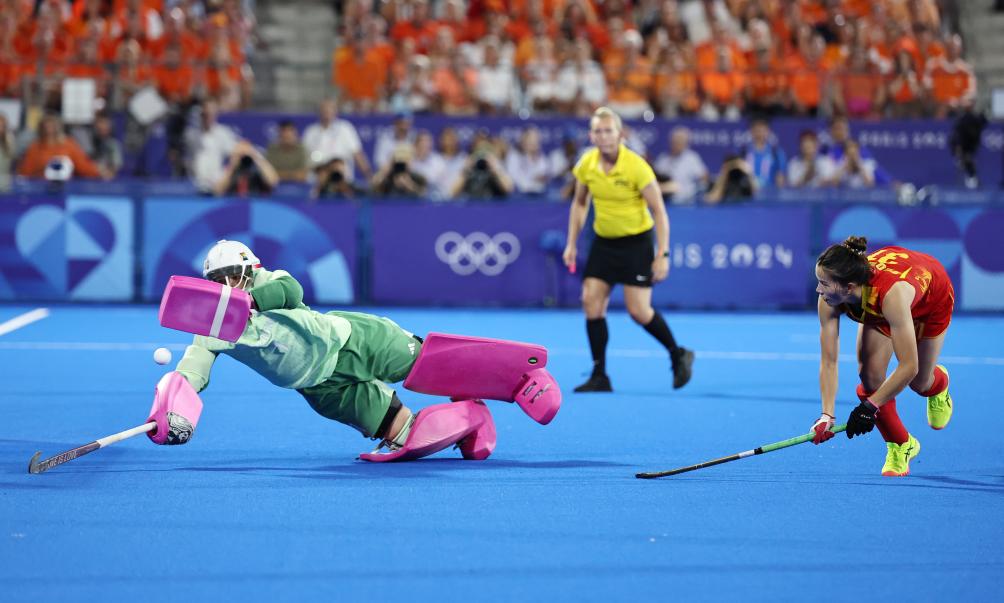 2024年8月9日,中国队球员在巴黎奥运会女子曲棍球金牌赛中进攻。新华社记者 任鹏飞 摄
