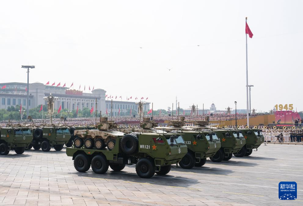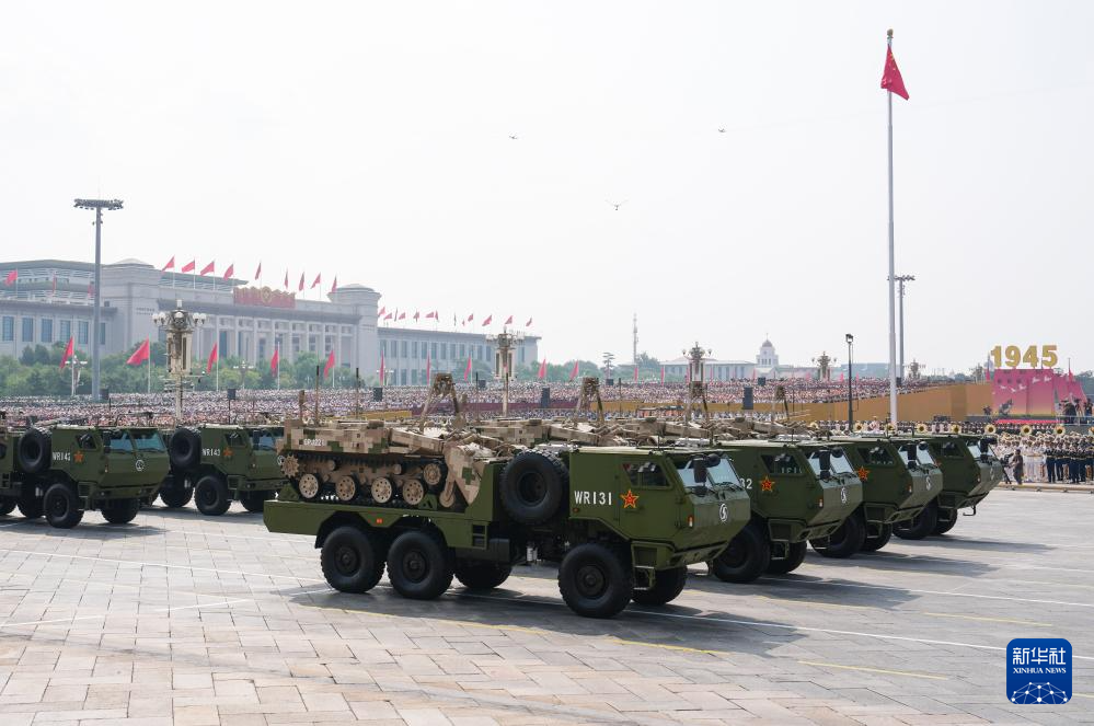 9月3日,纪念中国人民抗日战争暨世界反法西斯战争胜利80周年大会在北京隆重举行。这是远程火炮方队接受检阅。
