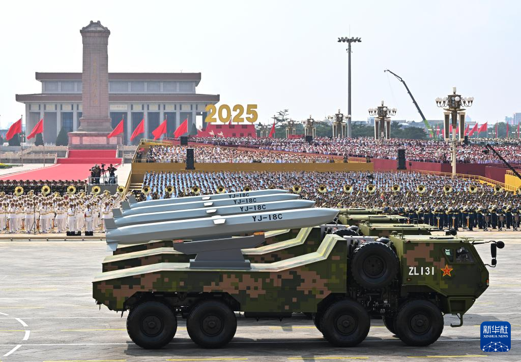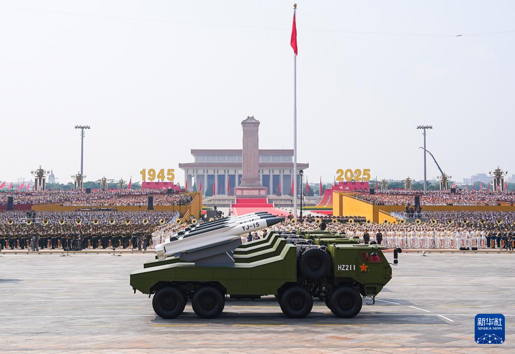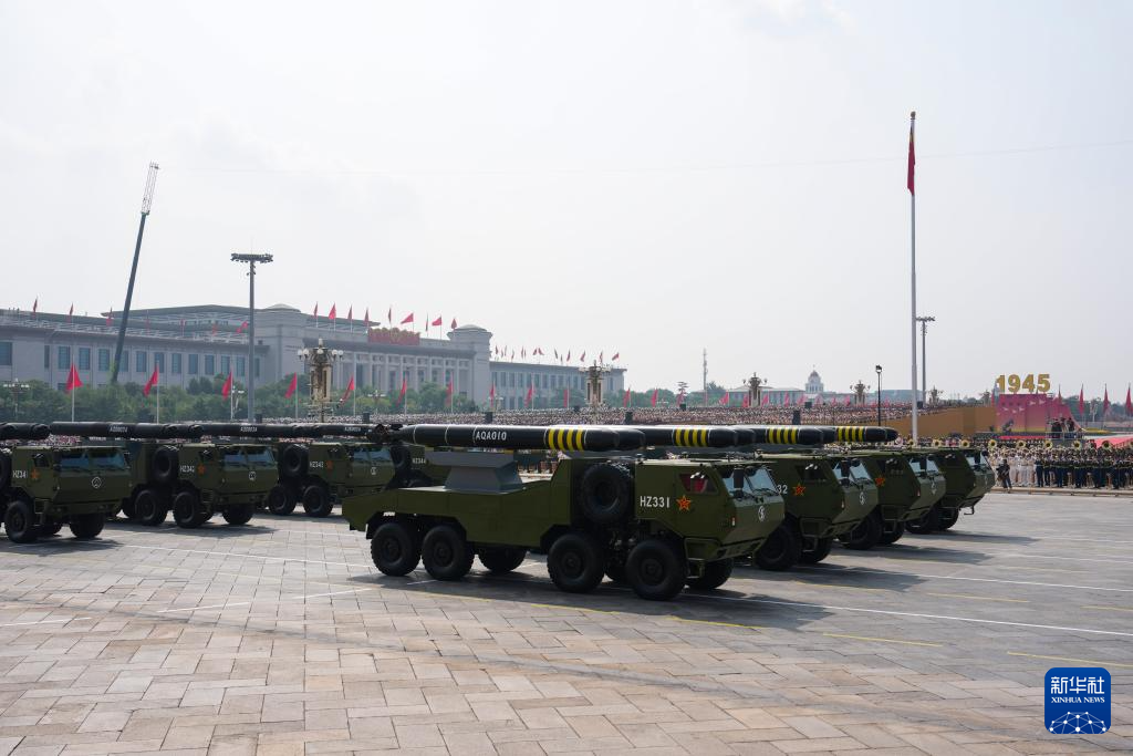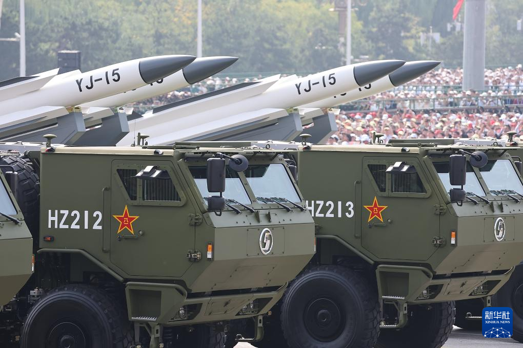 9月3日,纪念中国人民抗日战争暨世界反法西斯战争胜利80周年大会在北京隆重举行。这是反舰导弹方队接受检阅。