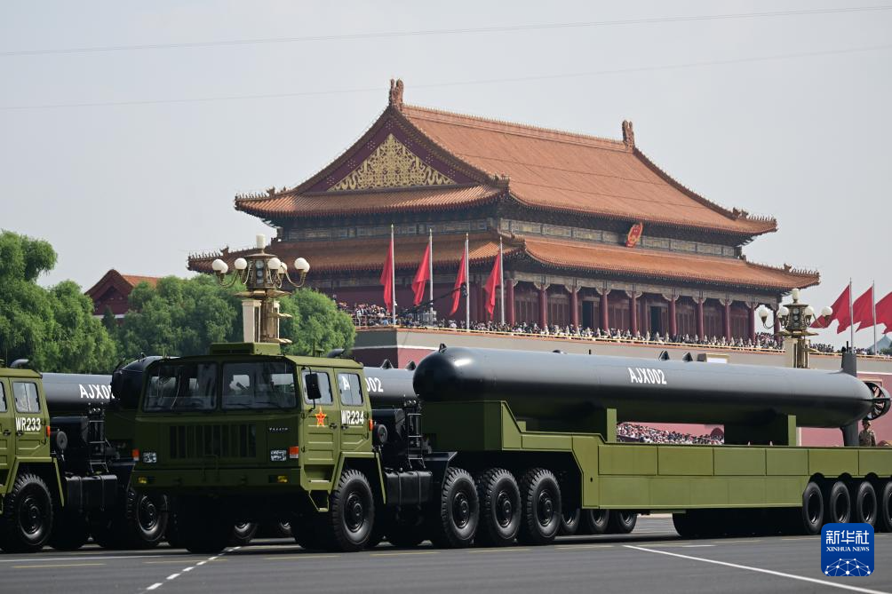 9月3日,纪念中国人民抗日战争暨世界反法西斯战争胜利80周年大会在北京隆重举行。这是火箭军方队接受检阅。